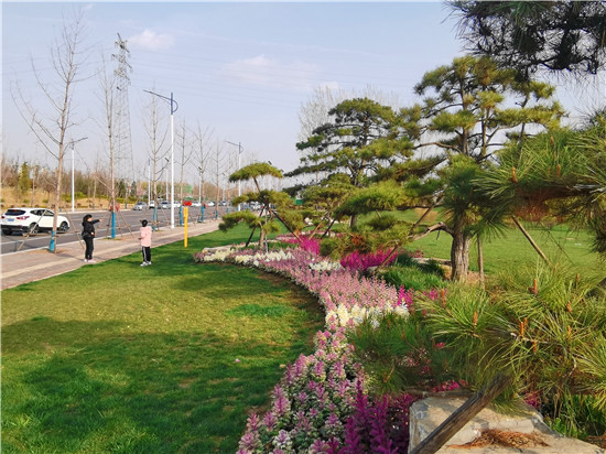 自從沙潁河改造后,沿河步道蜿蜒曲折,微地形高低錯落,兩側(cè)栽有香樟、槐樹、雪松、石楠等喬灌木,碧桃、櫻花等彩色樹種夾雜其間,營造出河岸飄渺悠揚的意境。