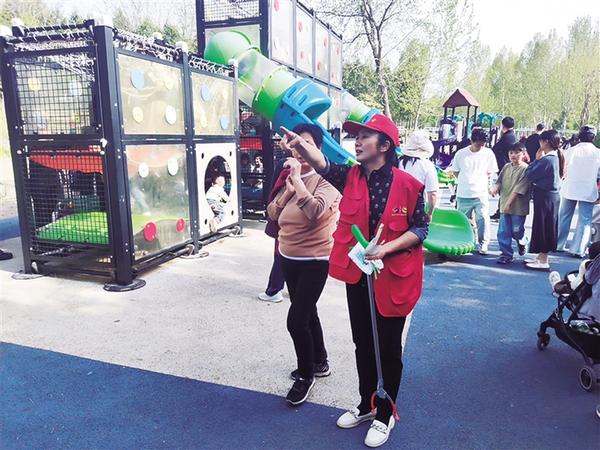 清明假期,周口植物園迎來客流高峰。周口市大鐵牛巾幗志愿者聯(lián)合會(huì)的志愿者始終堅(jiān)守崗位,為游客提供幫助與服務(wù)。