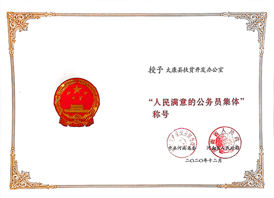 近日,省委、省政府對(duì)第四屆全省“人民滿意的公務(wù)員”和“人民滿意的公務(wù)員集體”進(jìn)行表彰,太康縣扶貧開(kāi)發(fā)辦公室榮獲第四屆“人民滿意的公務(wù)員集體”。