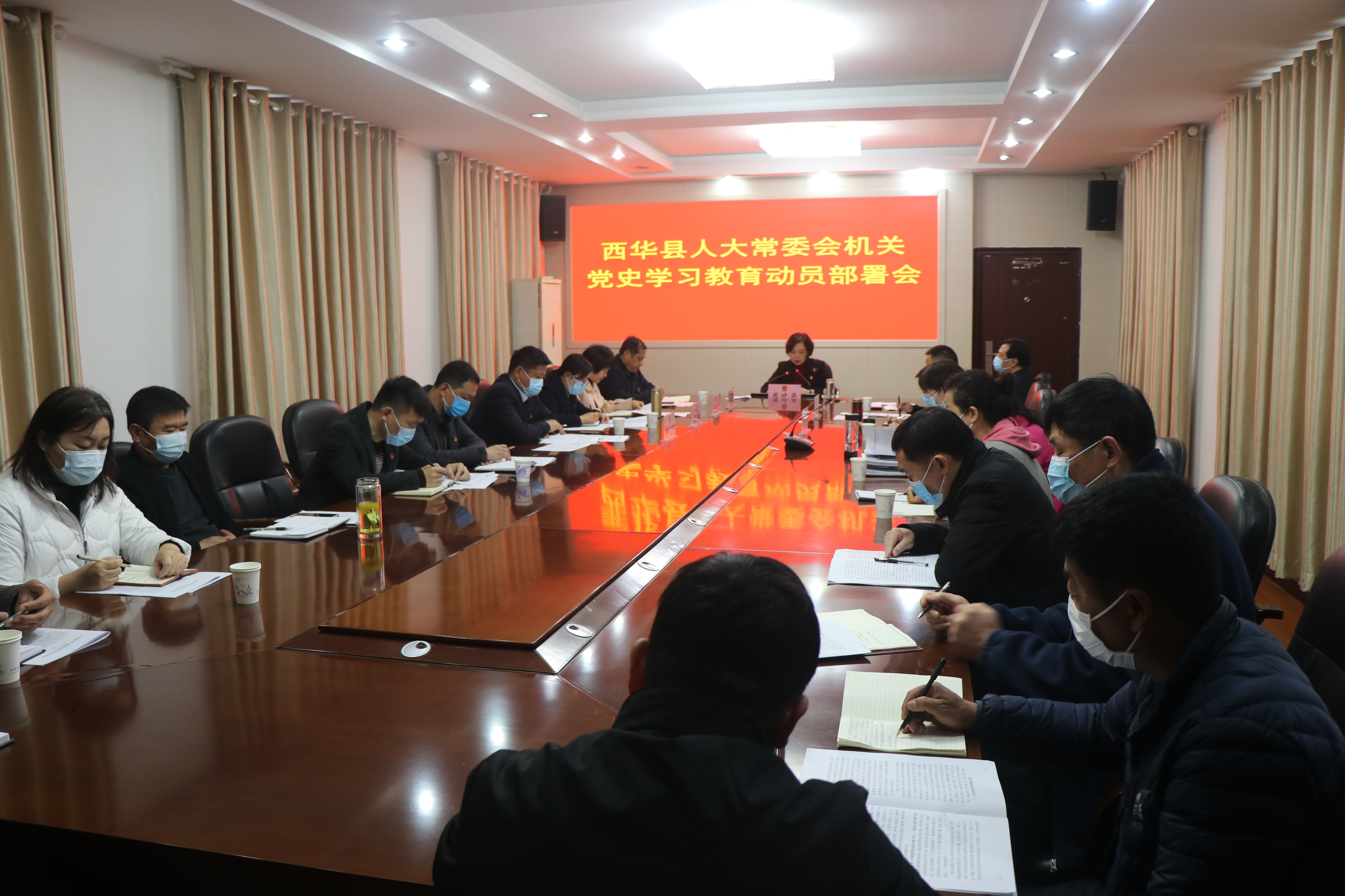 4月2日,西華縣人大常委會(huì)機(jī)關(guān)召開(kāi)黨史學(xué)習(xí)教育動(dòng)員部署會(huì)議,研究部署縣人大常委會(huì)機(jī)關(guān)黨史學(xué)習(xí)教育工作。縣人大常委會(huì)黨組書(shū)記、主任周曉燕出席會(huì)議并講話,縣人大常委會(huì)副主任趙曉春,黨組成員、副主任龐有敬出席會(huì)議,機(jī)關(guān)全體黨員干部參加會(huì)議。