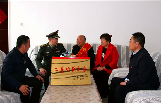李峰說(shuō):“一張立功喜報(bào),不僅是軍人榮譽(yù)的象征、成長(zhǎng)進(jìn)步的見證,也承載著軍人家屬的期盼與慰藉。功臣是實(shí)現(xiàn)強(qiáng)軍興軍目標(biāo)的尖兵,他們?cè)诓筷?duì)建功立業(yè),我們力所能及服務(wù)保障好他們的家人,積極在全社會(huì)營(yíng)造起‘功臣受愛戴、軍人受尊崇、軍屬受尊敬’的氛圍?!睘榇?,鹿邑縣人武部積極構(gòu)建軍人軍屬榮譽(yù)體系,每逢重大節(jié)日,都要協(xié)調(diào)地方黨委、政府開展為現(xiàn)役軍人和軍屬送喜報(bào),掛功臣匾、光榮牌等活動(dòng),通過(guò)活動(dòng)激勵(lì)等形式,讓軍人軍屬享有更多的“專屬榮光”,努力營(yíng)造“一人參軍,全家光榮;一人立功,全村光榮”的濃厚氛圍,更加堅(jiān)定了軍屬支持子女獻(xiàn)身國(guó)防的決心,進(jìn)一步激發(fā)了鹿邑籍官兵獻(xiàn)身軍營(yíng)、報(bào)效祖國(guó)的積極性。②9