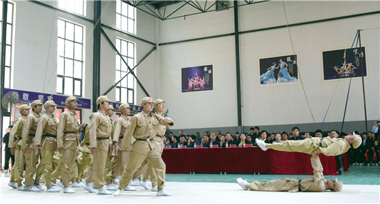 4月12日下午,項城市雜技藝術(shù)學(xué)校通過運(yùn)用雜技藝術(shù)編創(chuàng)的紅色雜技劇,在該校首次面向社會展演,以慶祝建黨100周年。同學(xué)們穿著解放軍服裝,模擬渡江、登城、翻越城墻、槍林彈雨戰(zhàn)斗等場景,演繹了一場紅色文化教育的情景劇,讓人耳目一新,受到大家一致好評。周口日報·周道客戶端記者 梁照曾 攝