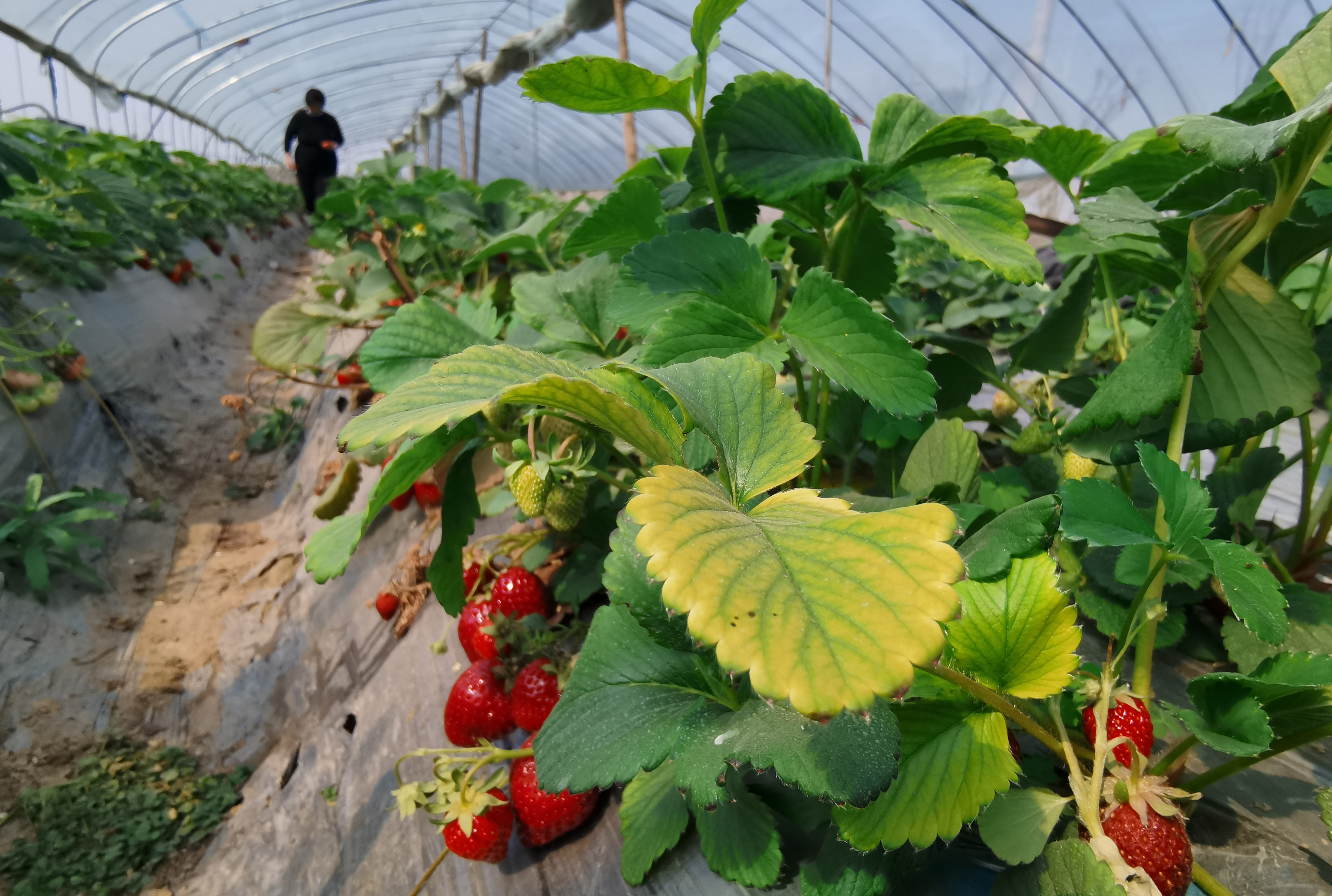 4月14日,商水縣八一大道南段城關(guān)鄉(xiāng)的草莓大棚和花卉大棚連成片。在草莓種植大棚內(nèi),紅彤彤的草莓吸引了不少游客前來(lái)采摘。商水縣城關(guān)鄉(xiāng)不少農(nóng)民結(jié)合所處地域優(yōu)勢(shì),發(fā)展種植草莓、花卉等經(jīng)濟(jì)作物,吸引不少縣城及周口市區(qū)的市民來(lái)此采摘,促農(nóng)民增收。②9