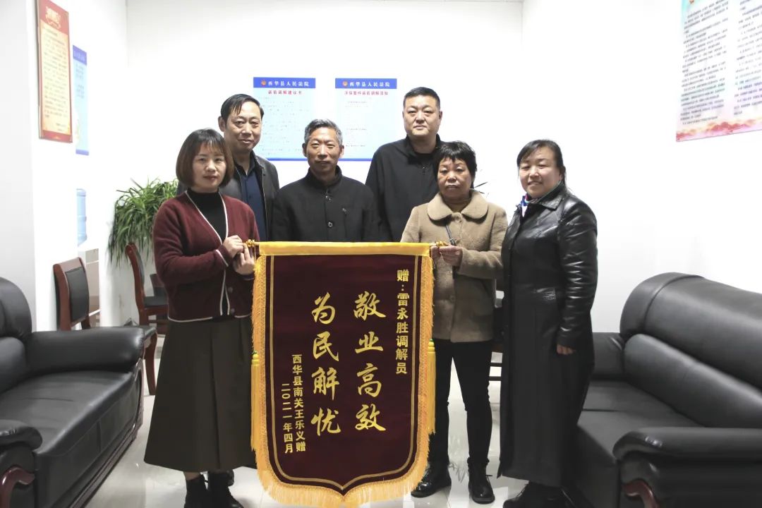“要不是雷調(diào)解員出面調(diào)解,我的錢還不知道什么時(shí)候能要回來呢,這可幫了我們大忙……”4月13日上午,當(dāng)事人王某將一面印有“敬業(yè)高效 為民解憂”的錦旗送至西華縣法院政協(xié)委員調(diào)解員雷永勝手中,對其耐心高效的調(diào)解工作表示衷心感謝。