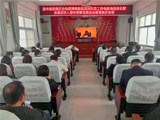 4月16日,西華縣防范打擊電信網(wǎng)絡(luò)新型違法犯罪工作電視電話會議暨全縣農(nóng)村人居環(huán)境整治推進(jìn)會以視頻會議形式召開。聶堆鎮(zhèn)在鎮(zhèn)政府三樓會議室設(shè)置分會場,組織鎮(zhèn)政府全體干部、派出所所長、各村支部書記參加會議。