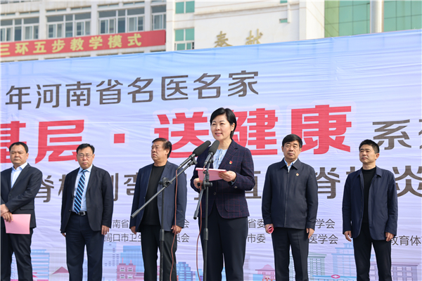 羅文閣致歡迎詞。她說,只有全民健康才有全面小康。今天,河南省在校青少年脊柱側(cè)彎和強(qiáng)直性脊柱炎篩查義診活動(dòng)走進(jìn)鄲城,對(duì)鄲城孩子們的健康成長(zhǎng)是件好事、實(shí)事,我們將全力以赴,做好配合,爭(zhēng)取讓項(xiàng)目惠及更多患者,同時(shí)希望全縣廣大醫(yī)護(hù)工作者以這次活動(dòng)為契機(jī),珍惜難得的學(xué)習(xí)機(jī)會(huì),從名醫(yī)名家身上,學(xué)習(xí)出類拔萃的醫(yī)療技術(shù)、德藝雙馨的大醫(yī)情懷、心系群眾的高尚情操、不辭勞苦的敬業(yè)精神,不忘初心、牢記使命,勤學(xué)苦練、提升本領(lǐng),為鄲城創(chuàng)建國家健康縣城、做好鞏固拓展脫貧攻堅(jiān)成果同鄉(xiāng)村振興有效銜接作出更大貢獻(xiàn)。