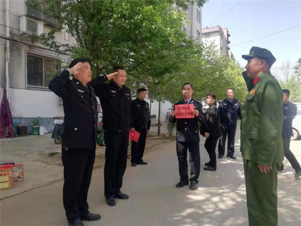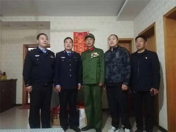 一大早,該所黨員民警身著戎裝,排著整齊的隊(duì)伍,分別前往荷花路派出所轄區(qū)的閆莊社區(qū)、荷花社區(qū)、前王營(yíng)等社區(qū),探望慰問(wèn)年逾花甲的抗戰(zhàn)老英雄,聆聽他們?cè)诳箵羟致缘膽?zhàn)斗歲月里浴血奮戰(zhàn)、不屈不撓的感人故事。在戰(zhàn)斗英雄尤洪亮家中,民警深切感受了那場(chǎng)保家衛(wèi)國(guó)反擊戰(zhàn)的慘烈,看到了新時(shí)代最可愛(ài)的人。