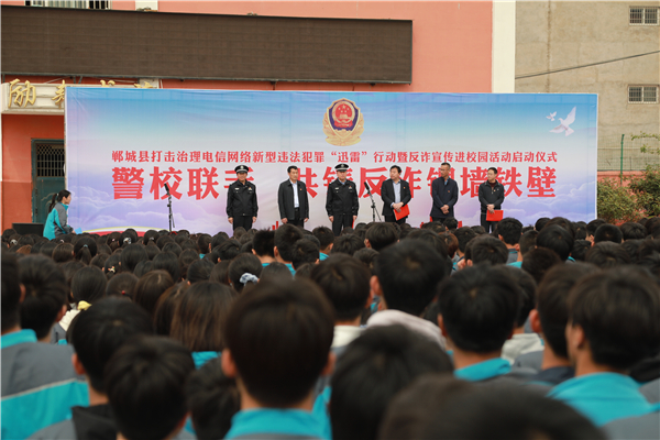 4月18日上午,鄲城縣打擊治理電信網(wǎng)絡(luò)新型違法犯罪“迅雷”行動暨反詐宣傳進(jìn)校園活動儀式在縣三高啟動??h政府副縣長、公安局長陳鳳祥,縣政府辦公室主任賈培民,縣教體局黨組書記、局長羅明黨等出席啟動儀式,縣打擊治理電信網(wǎng)絡(luò)新型違法犯罪工作各成員單位、縣公安局、縣三高分別組成代表隊(duì)2200余人參加啟動儀式,儀式由賈培民主持。