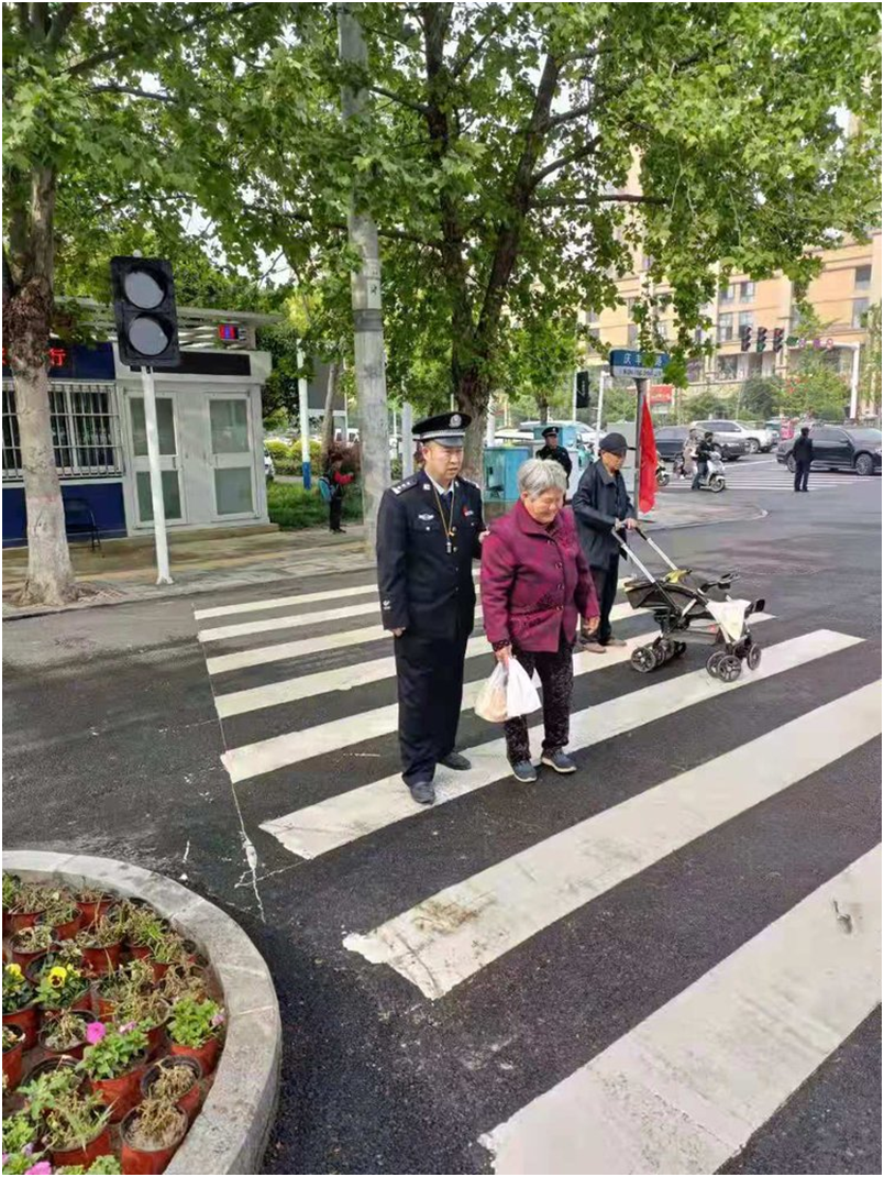 4月25日下午,細(xì)雨霏霏,示范區(qū)公安分局黨委委員、副局長劉峰和執(zhí)勤民警楊勇按照要求,在慶豐路和中原路交叉口紅綠燈處執(zhí)勤時,發(fā)現(xiàn)一位70多歲的老人步履蹣跚地往馬路對面走,由于步行速度較慢、紅綠燈時間短,她的步伐明顯有些不穩(wěn)。