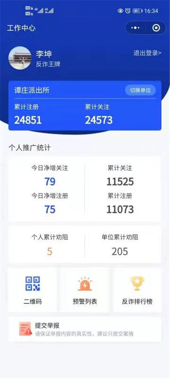 今年2月,商水縣公安局開(kāi)始利用“金鐘罩”預(yù)防電信詐騙活動(dòng)。在譚莊派出所多年的李坤拿著分配給自己的二維碼,做個(gè)小牌子掛到脖子上,開(kāi)始他的“金鐘罩”宣傳注冊(cè)工作。轄區(qū)企事業(yè)單位、村莊、群眾文化廣場(chǎng)、KTV、網(wǎng)吧、超市、洗浴中心等人員密集場(chǎng)所是他必須進(jìn)的地方,見(jiàn)親戚說(shuō)、逢朋友講,三句話離不開(kāi)“金鐘罩”反詐騙宣傳。