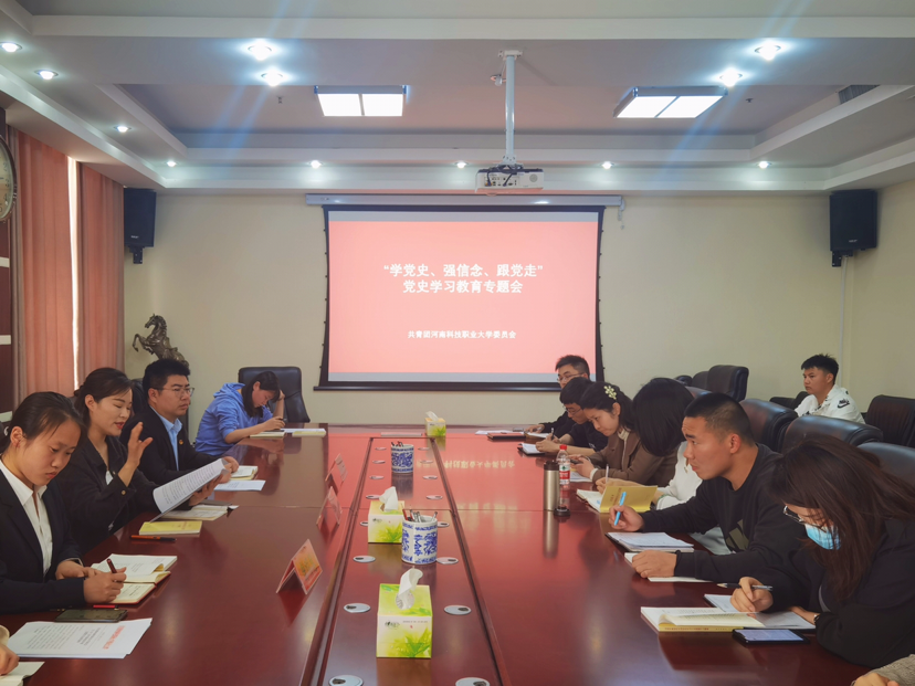 為認(rèn)真貫徹習(xí)近平總書記在黨史學(xué)習(xí)教育動員大會上的重要講話精神,引領(lǐng)廣大黨員深入學(xué)習(xí)黨的歷史,深化青年厚植愛黨、愛國、愛社會主義的情感,4月29日,共青團(tuán)河南科技職業(yè)大學(xué)委員會召開“學(xué)黨史、強信念、跟黨走"黨史學(xué)習(xí)教育專題會。