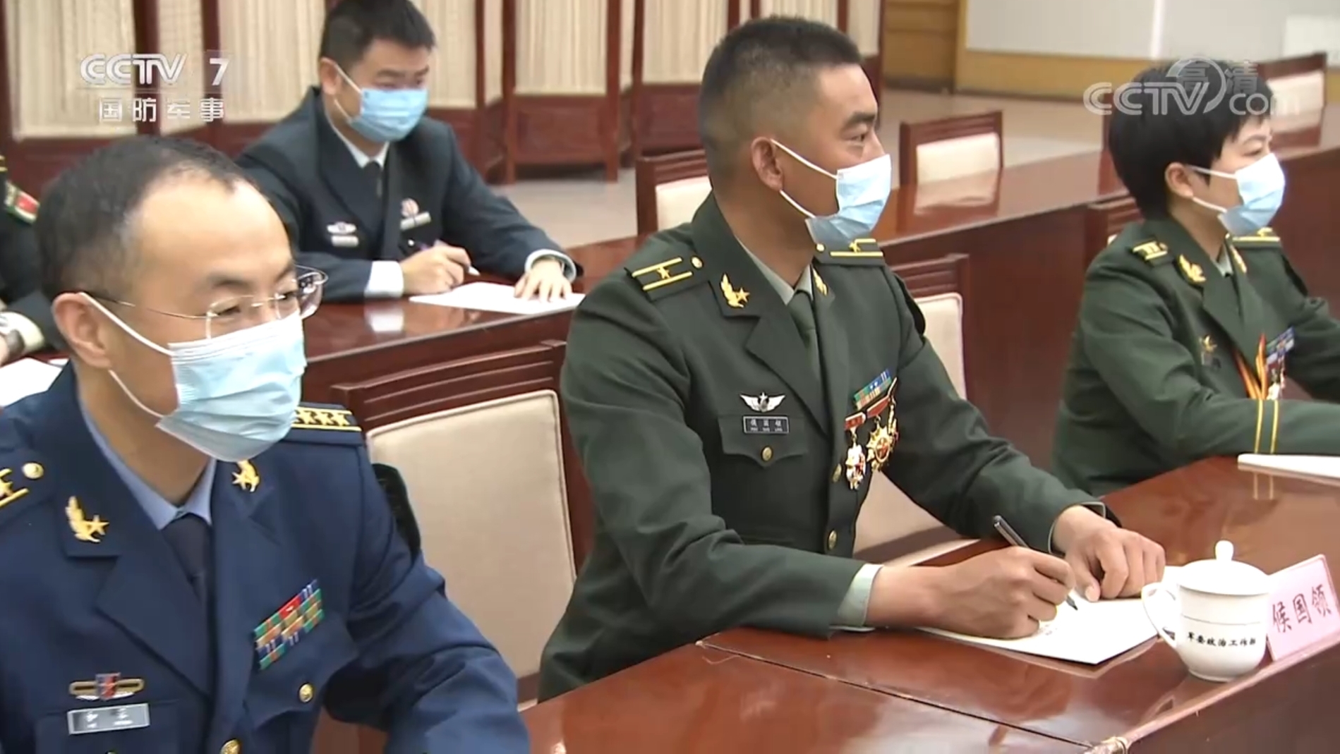 央視新聞截圖,侯國領(中)在座談會上認真聽講
