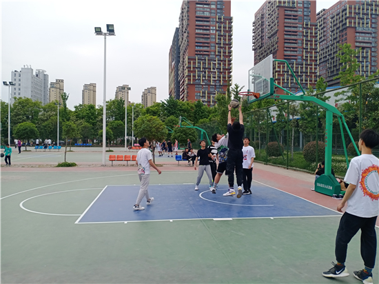 5月2日,記者在周口市體育中心籃球場(chǎng)地看到,市民們?cè)诩偃绽镞M(jìn)行體育鍛煉的熱情不減,他們紛紛來到籃球場(chǎng)打起了籃球,既鍛煉了身體,又度過了一個(gè)有意義的假期。②9