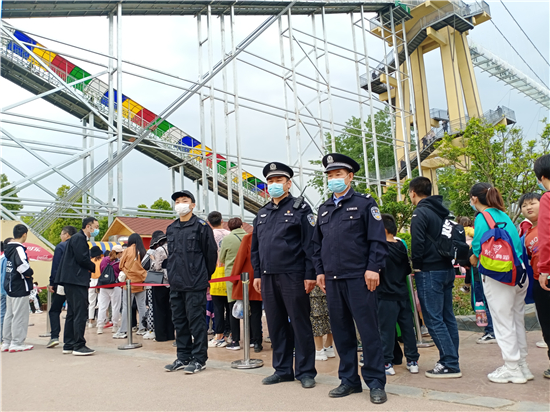 “接受游客求助、及時(shí)調(diào)解糾紛、處理園內(nèi)外各類突發(fā)事件……”在一天緊張而繁忙的工作中,民警顧不上休息,堅(jiān)守在景區(qū)一線,用自己的辛苦和汗水,換來(lái)了游客的游園安全,為游客創(chuàng)造了良好的治安環(huán)境。