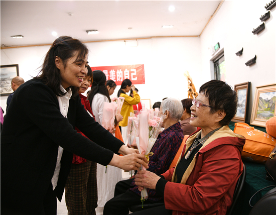 向母親獻(xiàn)花期盼健康、開心、長(zhǎng)壽