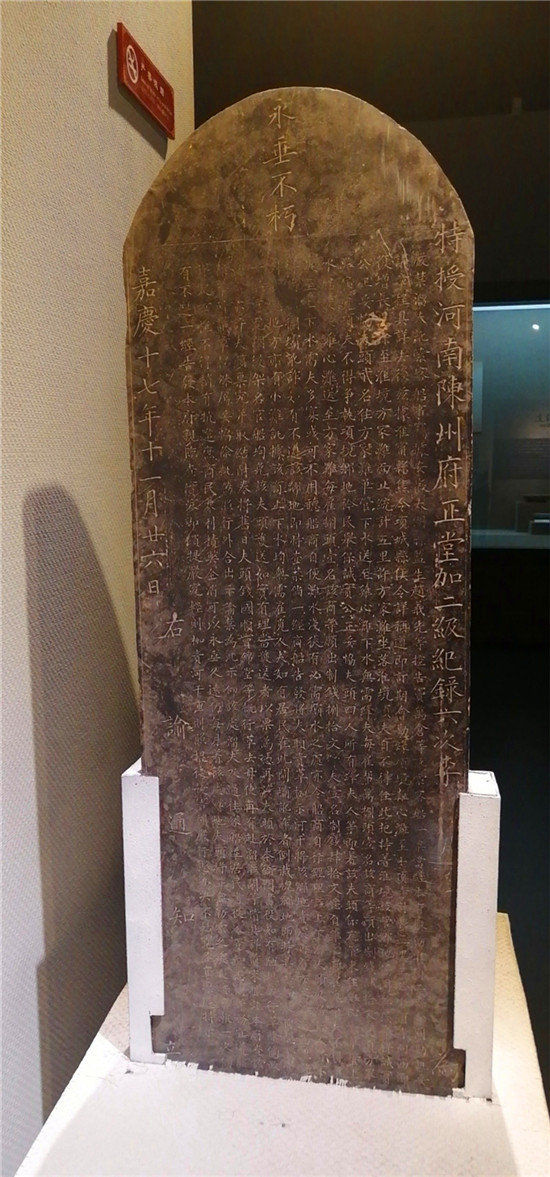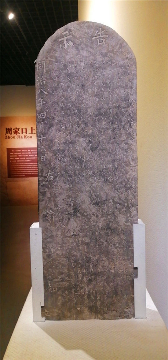 這通《嚴禁溜夫訛索客船事告示碑》作為當時周口水運秩序管理中的官方意志,為研究清代晚期周口漕運文化提供了真實寶貴的歷史資料。在周口市博物館,它卓然獨立于一隅,默默地講述著那段水路風云。③6