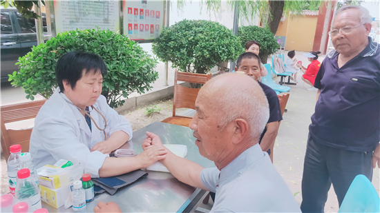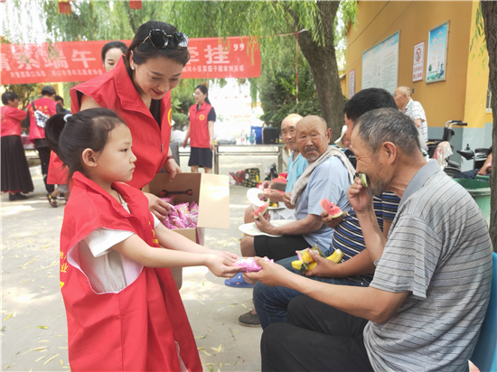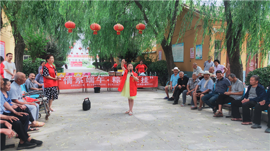 當(dāng)日上午,志愿者帶著粽子、西瓜、香蕉、面包等來到平店鄉(xiāng)敬老院,為這里的老人提供義診、義剪、義演等服務(wù),陪老人提前過端午節(jié)。