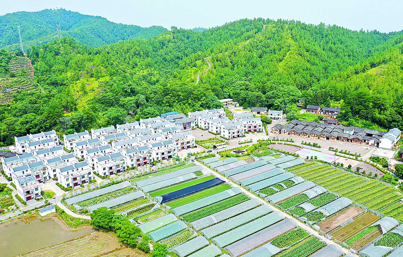 2012年6月,《國(guó)務(wù)院關(guān)于支持贛南等原中央蘇區(qū)振興發(fā)展的若干意見(jiàn)》出臺(tái)實(shí)施,華屋迎來(lái)了翻天覆地的變化。如今,華屋的低矮土屋早已拆了,取而代之的是66套嶄新的小康樓;村史樓前,一排排蔬菜、水果大棚鱗次櫛比,棚內(nèi)瓜果生機(jī)盎然;村莊左側(cè)特意保留的七棟土坯房整飾一新,已開(kāi)發(fā)為紅色旅游景點(diǎn)。產(chǎn)業(yè)興旺,小康夢(mèng)圓,華屋人過(guò)上了安居樂(lè)業(yè)、富裕幸福的火紅日子。