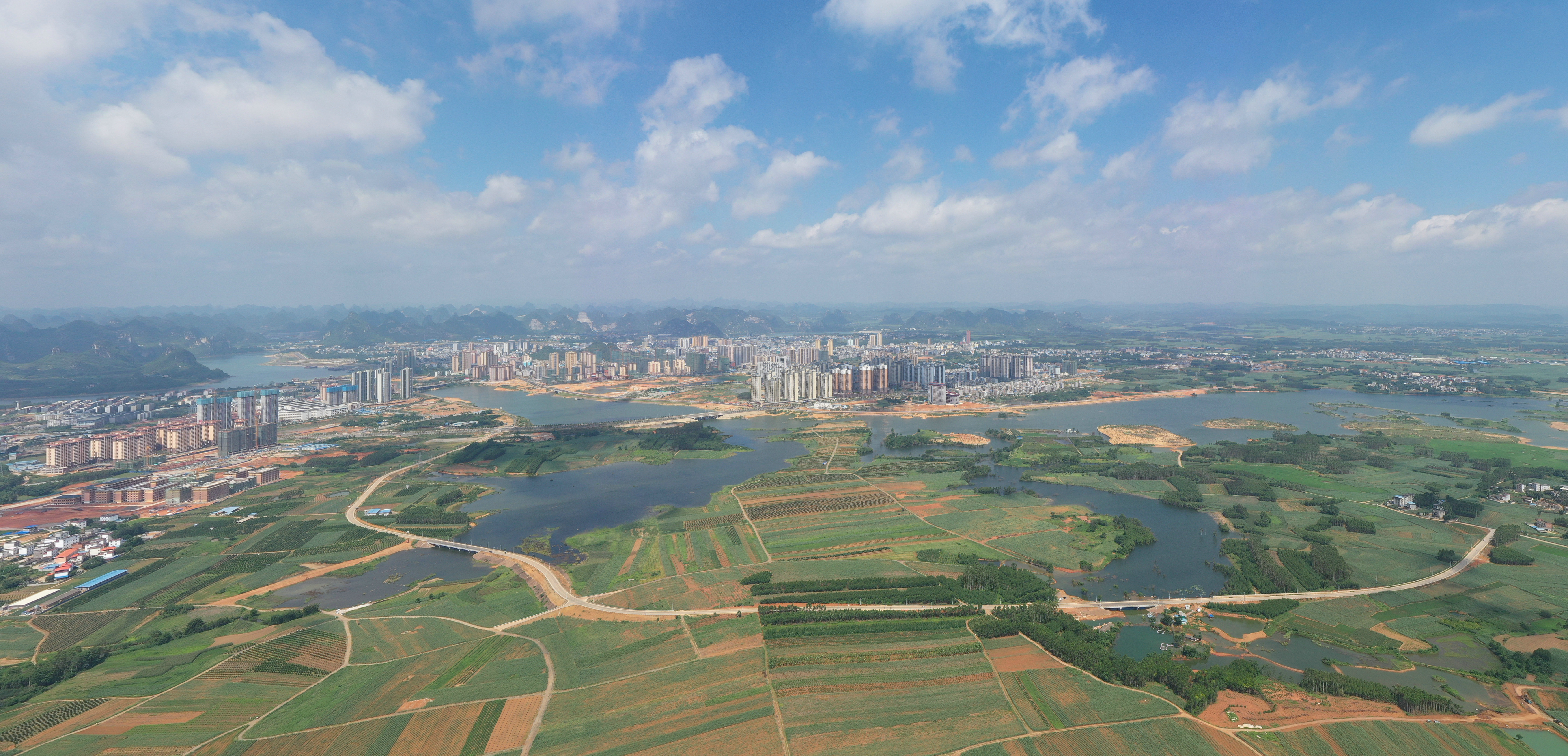 圖3:武宣縣城東七星湖鳥瞰圖。梁以松 攝