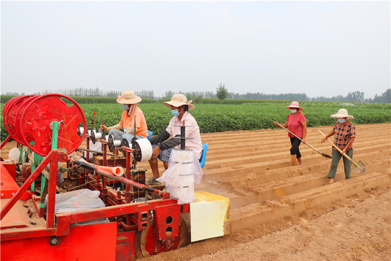 菜苗補(bǔ)栽全面展開。在韭園鎮(zhèn)蔬菜種植大戶李興華的胡蘿卜基地,2臺進(jìn)口大型播種機(jī)、起壟機(jī)來來回回,拉滴灌管的農(nóng)民工滿頭大汗搶播搶種。截至目前,全縣設(shè)施蔬菜改種補(bǔ)種2600余畝,修復(fù)大棚982座,6個(gè)重點(diǎn)育苗基地已恢復(fù)育苗能力,近期已育苗800萬株。