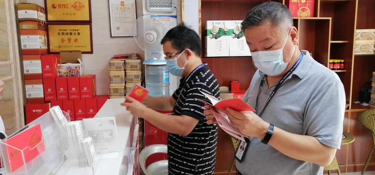 期間,共檢查了8家經(jīng)營單位。發(fā)現(xiàn)一家水產(chǎn)品經(jīng)營者涉嫌利用蟹卡說明書、獎牌等進行夸大宣傳;一家商超涉嫌利用酒包裝盒及標簽標示誤導消費者。執(zhí)法人員現(xiàn)場進行了筆錄,并下達詢問通知書,要求其提供相關(guān)證明材料接受詢問調(diào)查。