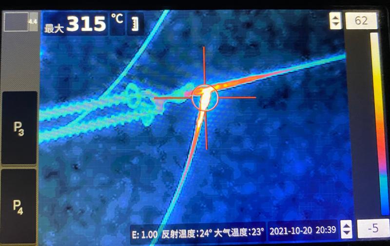 “蓮鄺線#19桿塔A相引流板連接螺栓發(fā)熱315℃,這屬緊急缺陷,需要立即處理!”10月20日晚,國網(wǎng)周口供電公司輸電運(yùn)檢中心在對110千伏蓮鄺線六級電網(wǎng)風(fēng)險保電夜巡過程中,發(fā)現(xiàn)蓮鄺線#19桿塔A相引流板存在打火現(xiàn)象。