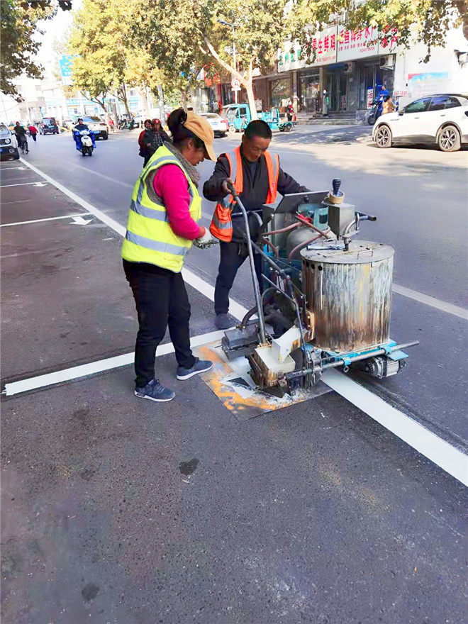10月26日晚6時(shí)許,在周口大道與文體路交叉口附近,幾名工作人員正在使用熱熔畫(huà)線機(jī),對(duì)路面上不太清晰的斑馬線進(jìn)行重新施劃?!奥访鏄?biāo)線是公路的‘無(wú)言哨兵’,覆畫(huà)后的道路交通標(biāo)線醒目美觀,一方面消除了安全隱患,保障了交通安全和暢通,另一方面也極大地美化、扮靚了沿線路域環(huán)境,成為城市文明的一道風(fēng)景線?!痹撠?fù)責(zé)人說(shuō)。