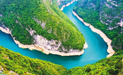 近年來(lái),長(zhǎng)江重慶段生態(tài)環(huán)境持續(xù)改善。圖為位于長(zhǎng)江支流大寧河流域重慶市巫山縣小三峽滴翠峽的魚(yú)頭灣。 新華社記者 王全超攝