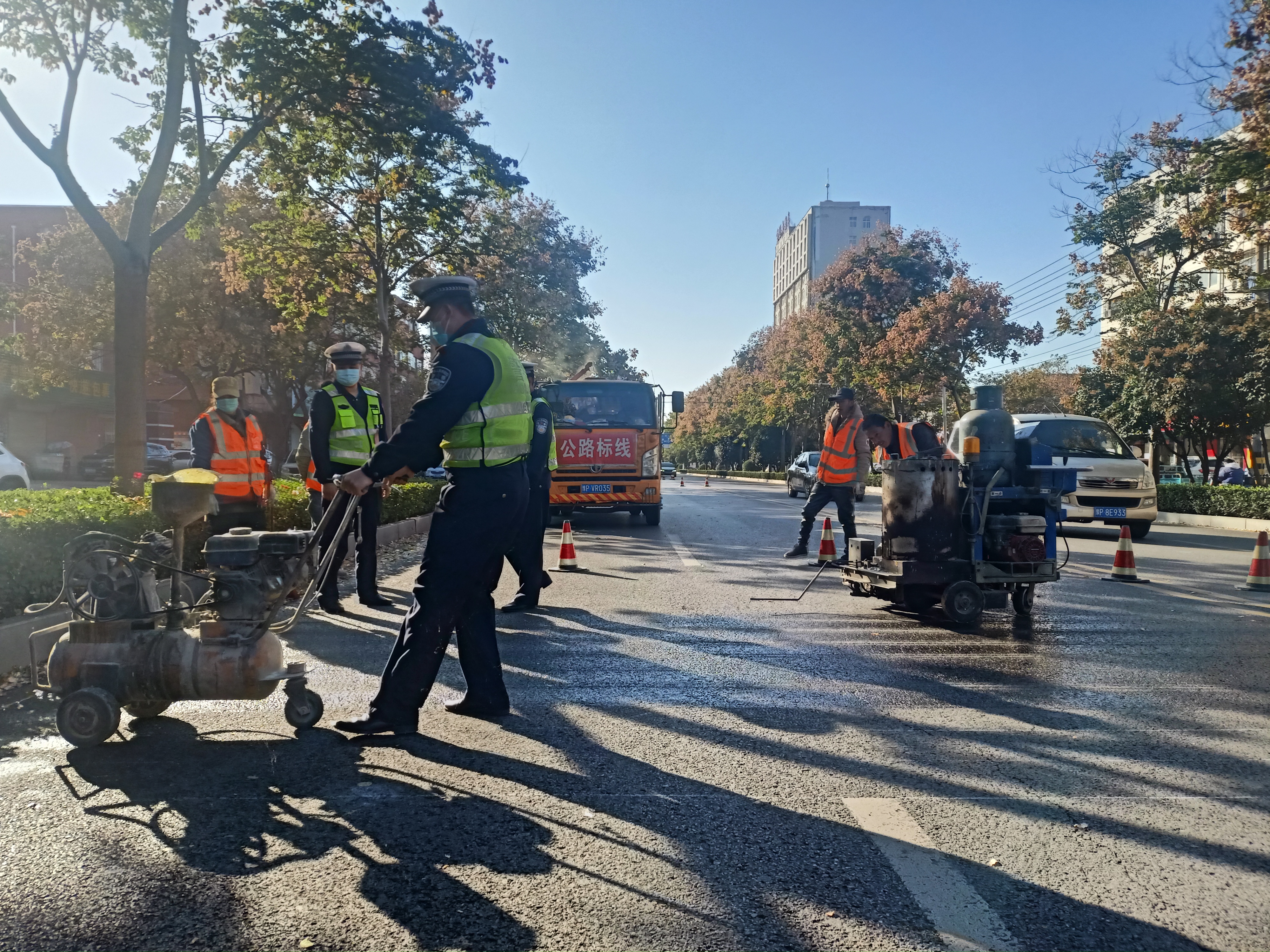 當(dāng)日下午,記者在黃河路看到,施工人員正在熟練地操作標(biāo)線機(jī),認(rèn)真細(xì)致地施劃減速震蕩標(biāo)線。市公安局交通管理支隊(duì)設(shè)施維護(hù)中心(以下簡(jiǎn)稱設(shè)施維護(hù)中心)工作人員黃勇說(shuō):“在創(chuàng)文期間,設(shè)施維護(hù)中心加大對(duì)道路護(hù)欄的清洗力度,完善交通信號(hào)燈的維護(hù),清除學(xué)校門口不合理的停車位,修剪遮擋交通設(shè)施的樹枝,排除路口的交通隱患?!?/p>