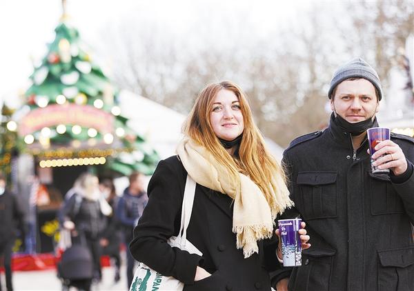 12月9日,人們?cè)诜▏?guó)巴黎杜伊勒里花園的圣誕市場(chǎng)品嘗熱紅酒。