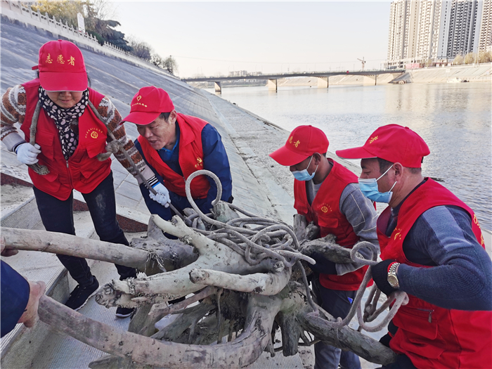 12月19日下午,周口市慈孝文化促進會組織志愿者,在中心城區(qū)沙潁河南岸(中州大道橋至八一大道橋段)對沙潁河堤坡垃圾、枯草進行清理?,F場,志愿者們拿著工具,對堤坡的枯草、垃圾,水邊的枯木等進行清理,志愿者們最后對垃圾進行分類處理并集中送到垃圾中轉站。