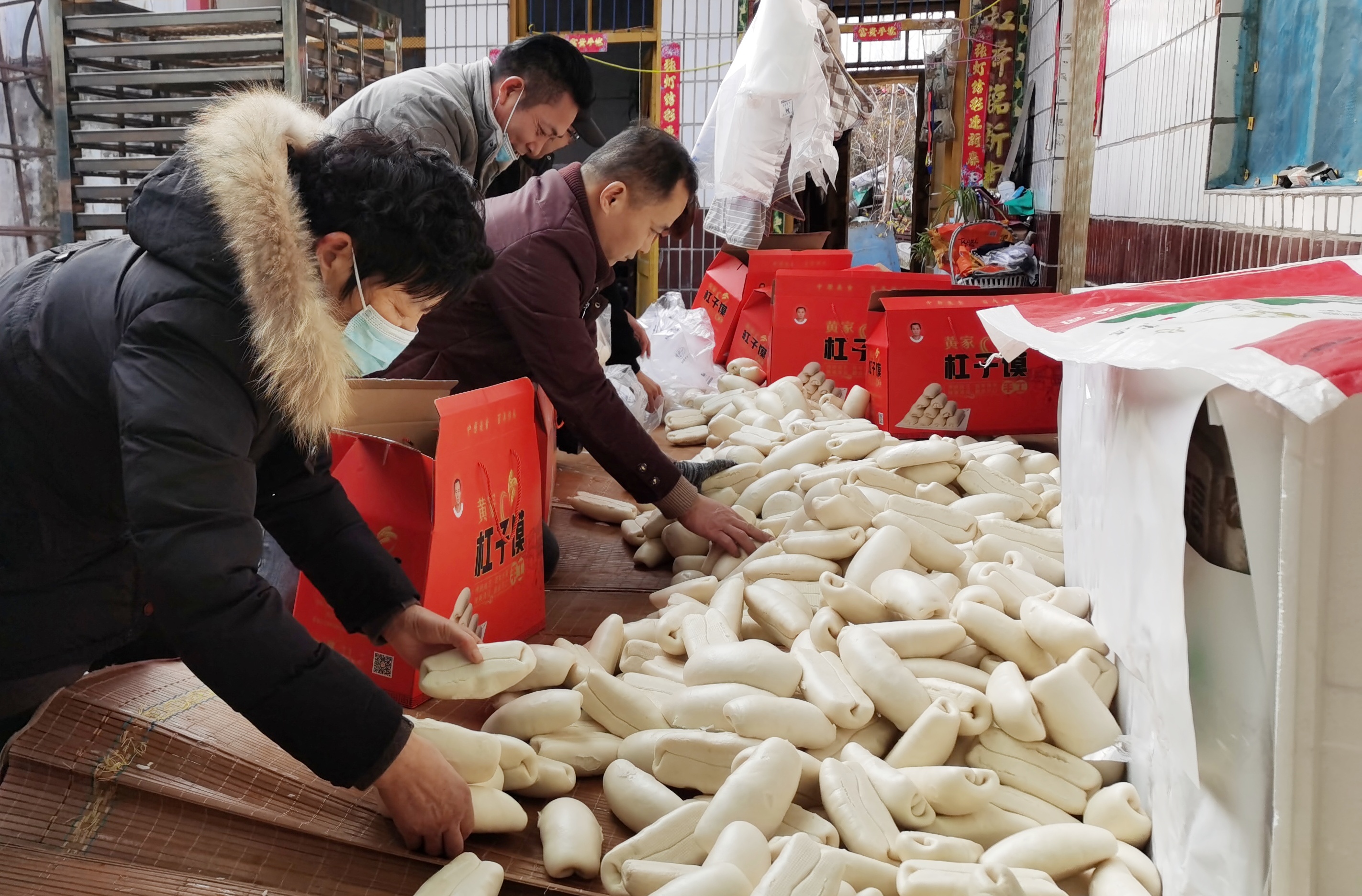 蒸好的杠子饃打包、裝箱,即將寄走,把這年味寄到漂泊游子手上