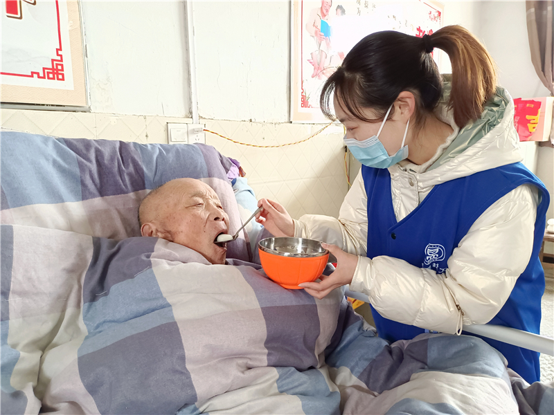 在敬老院內(nèi),社工、志愿者有的為老人打掃房間,有的陪老人拉家常,有的和老人一起參與趣味套圈……敬老院內(nèi)不時(shí)傳來笑聲。