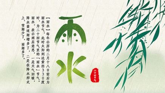 雨水是24節(jié)氣中的第2個(gè)節(jié)氣。每年的2月19日前后,太陽黃經(jīng)達(dá)330度時(shí),是二十四節(jié)氣的雨水。此時(shí),氣溫回升、冰雪融化、降水增多,故取名為雨水。雖然這個(gè)節(jié)氣開始冰雪融化桃花開,但冷空氣依然活躍,晝夜溫差較大,公眾要注意保暖預(yù)防“倒春寒”。