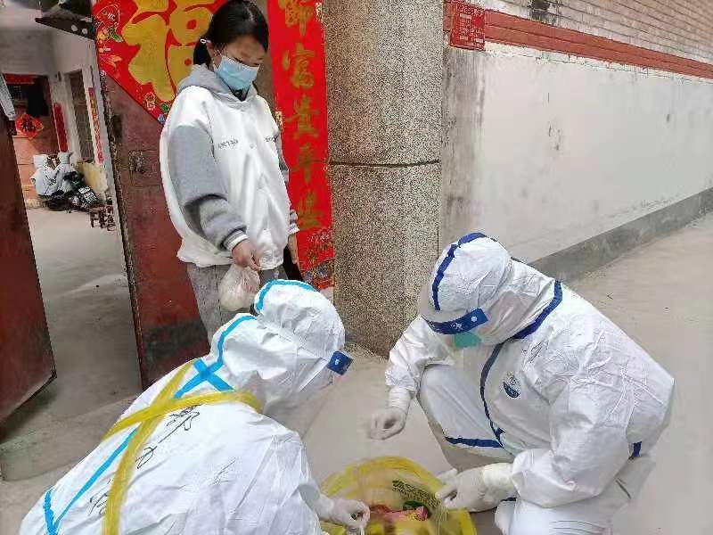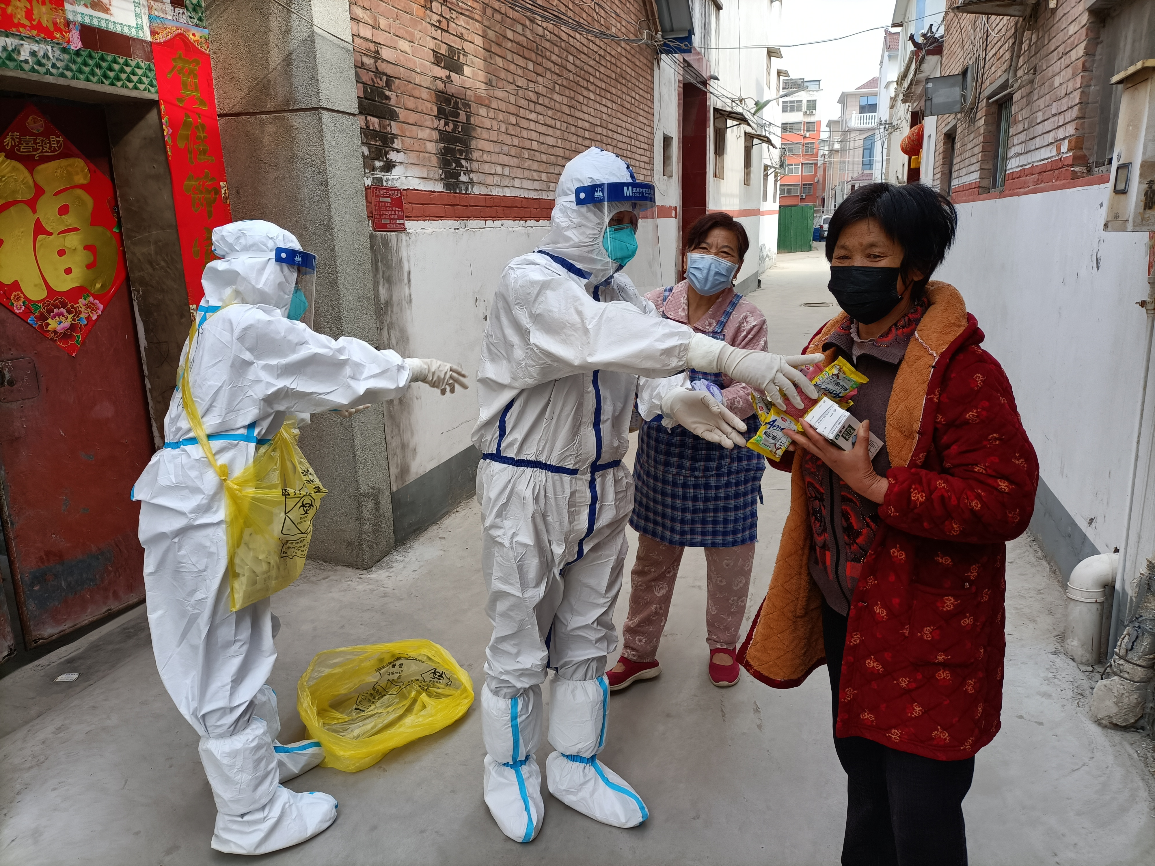 到達(dá)太康后,王群禮被分到了城關(guān)回族鎮(zhèn)封控區(qū)進(jìn)行入戶核酸采集,當(dāng)時(shí)的他也很緊張,認(rèn)真地穿防護(hù)服,熟記采集核酸的每一個(gè)動(dòng)作要領(lǐng),然后投身抗疫最前線。在入戶采樣的時(shí)候,王群禮發(fā)現(xiàn)有一個(gè)小女孩獨(dú)自在家,她每次聽到敲門聲都是先開一點(diǎn)縫,悄悄觀察外面,當(dāng)看到是防疫人員時(shí),才慢慢打開門?!拔铱梢钥闯鏊目謶趾蜔o助,不知道她晚上怕不怕,會(huì)不會(huì)做飯,問她怎么吃飯,她也不說話,我心里很不是滋味?!睆哪翘扉_始,王群禮每次入戶采核酸的時(shí)候,就幫她帶點(diǎn)吃的,王群禮會(huì)把他的早餐留給她,還把自己的水果、零食也都送給她。