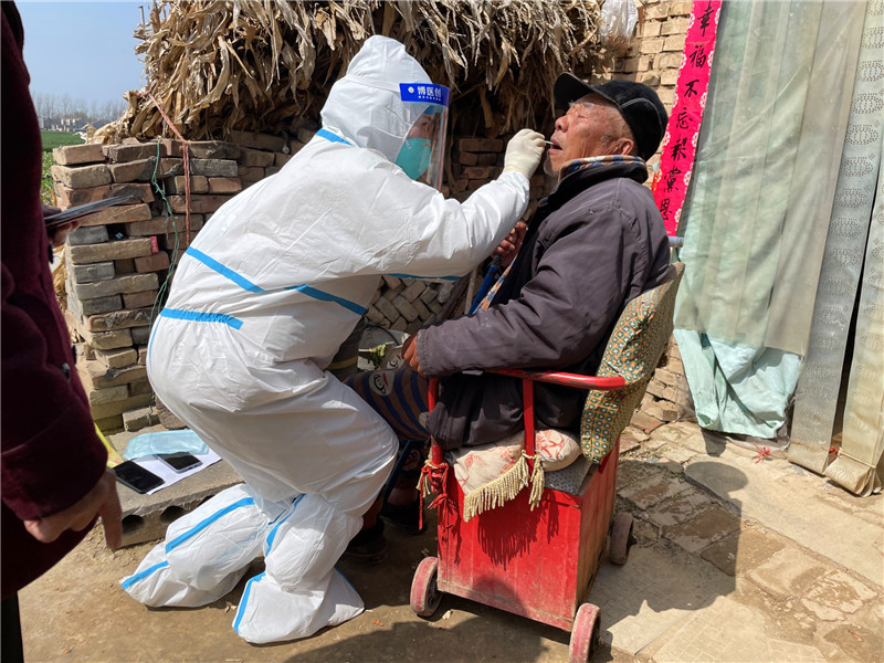 3月23日至4月13日,喬晶每天凌晨出發(fā),穿著密閉的防護服連續(xù)22天在太康馬廠工作。4月2日起,所有行政村實行入戶采集。從全民采樣到入戶采樣、封控人員實行一戶一管、重點管控人員一人一管、二十人混管到單管,加之村莊大、人員居住分散等,喬晶和她的同事面臨的是巨大挑戰(zhàn)!援太期間,每天都是30多攝氏度的高溫天氣,喬晶穿著密不透風(fēng)的防護服,戴著防護帽、防護面屏、口罩、手套,幾分鐘便汗如雨下。對此,她無怨無悔。