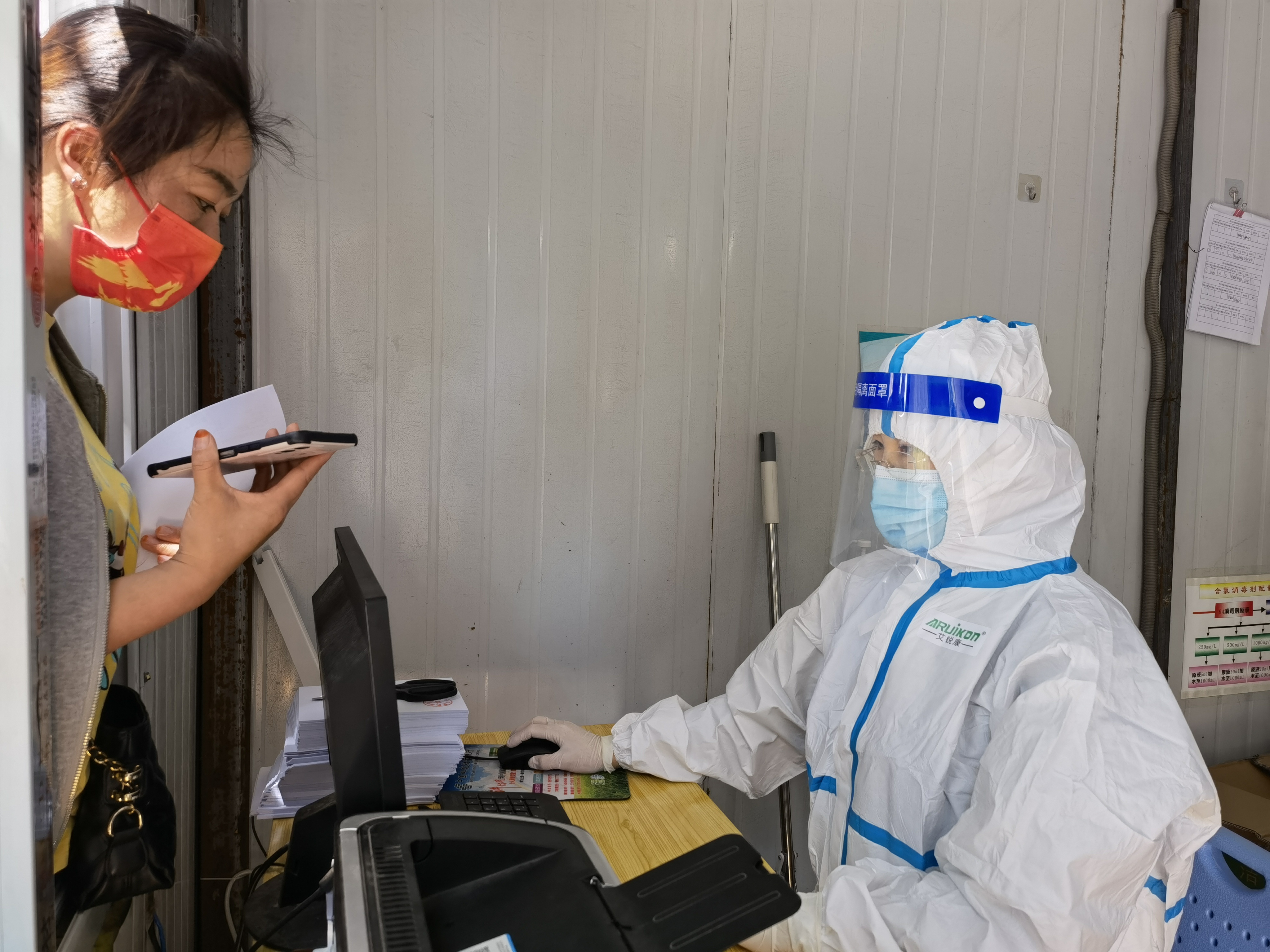 5月4日,記者在周口東新醫(yī)院核酸檢測(cè)點(diǎn)見(jiàn)到了全副“武裝”的王琳,她坐在核酸檢測(cè)點(diǎn)的核酸檢測(cè)報(bào)告打印崗位上,身穿防護(hù)服,認(rèn)真細(xì)致為需要幫助的群眾打印報(bào)告。“大到車(chē)輛安排,小到口罩發(fā)放、體溫計(jì)調(diào)配等防護(hù)物資保障都要協(xié)調(diào)統(tǒng)籌,一刻也不能停歇,我就想著別有什么地方落下了。安排好一切后,我回到醫(yī)院,同事們都前往全員核酸檢測(cè)一線了,這里人手不太足,我頂上。做好后勤保障工作,解決一線醫(yī)護(hù)人員的后顧之憂是我的責(zé)任和義務(wù)。”王琳說(shuō)。