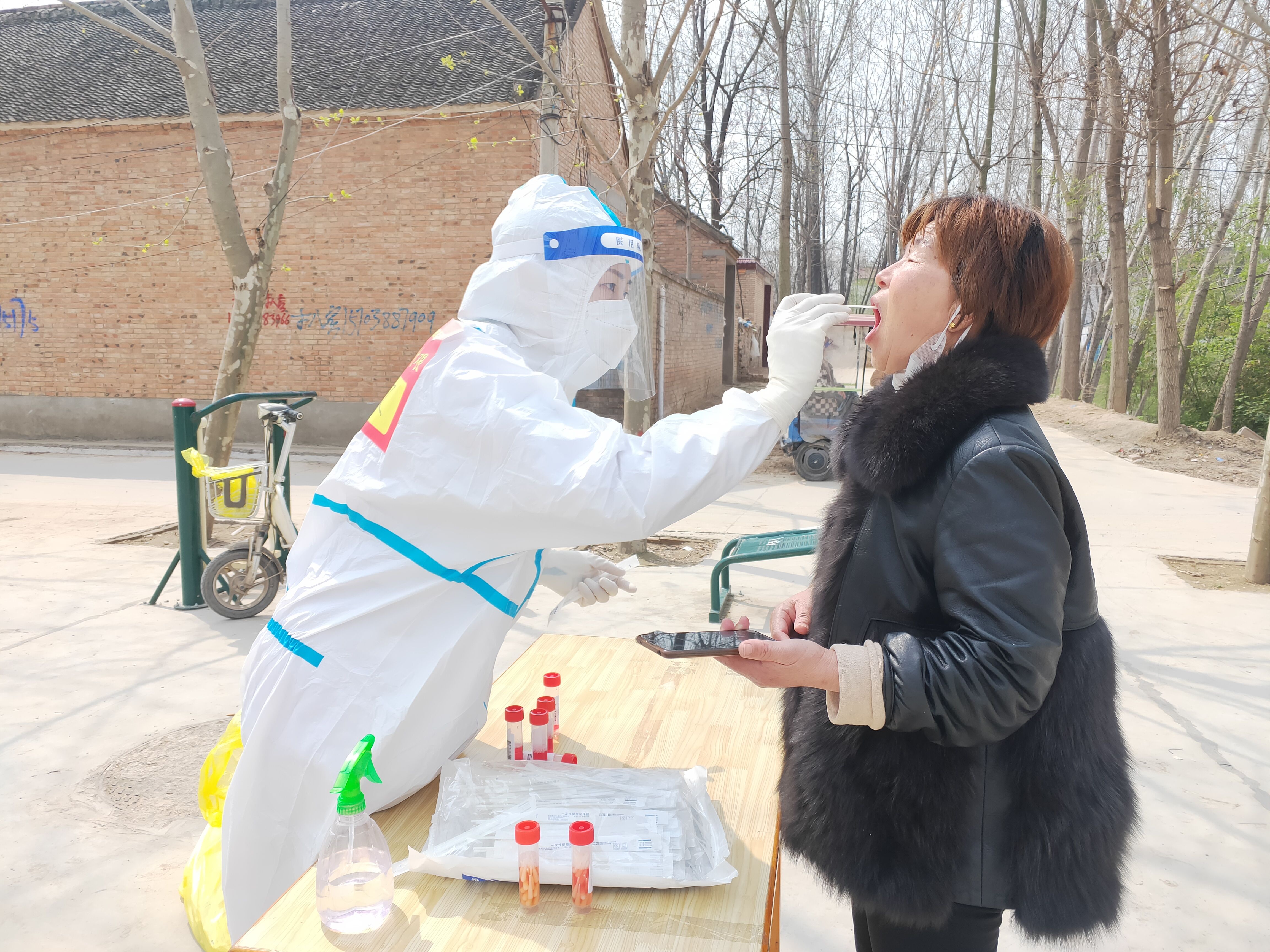 王文文和同事們于當(dāng)日早7點(diǎn)到達(dá)太康廣場(chǎng)進(jìn)行培訓(xùn)。培訓(xùn)結(jié)束后,在對(duì)接人的引領(lǐng)下,王文文帶領(lǐng)分隊(duì)46人前往太康縣張集鎮(zhèn)開展支援工作,主要負(fù)責(zé)張集鎮(zhèn)15個(gè)自然村,每日對(duì)近2萬(wàn)名群眾進(jìn)行核酸采集,他們分為15個(gè)組,一組負(fù)責(zé)一個(gè)采集點(diǎn)。第一天大家都沒有經(jīng)驗(yàn),工作中,王文文不時(shí)接到其他組隊(duì)員的咨詢電話,王文文詳細(xì)地為他們一一解答,保證工作順利開展。