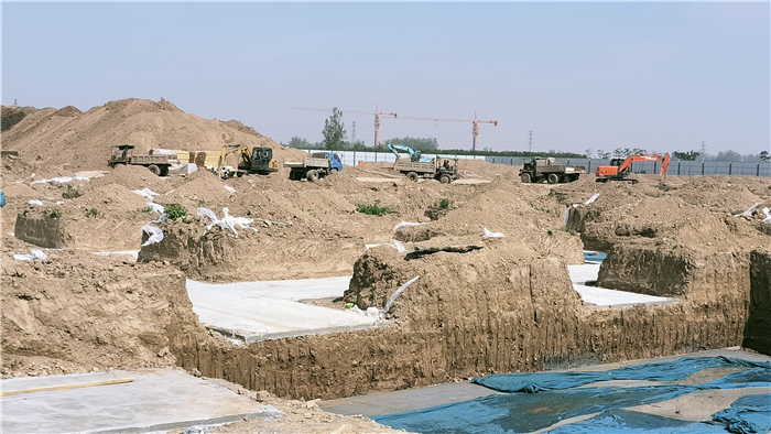 6月9日上午,記者走進沈丘縣現(xiàn)代科技產(chǎn)業(yè)園標準化廠房項目區(qū),只見遠處裝載機、運土車在工地上穿梭,近處是已經(jīng)澆筑完畢的地基墊層,地基旁邊十幾名鋼筋工將大盤的鋼筋拉直,然后再根據(jù)需要,在鋼筋加工設(shè)備上加工成形。