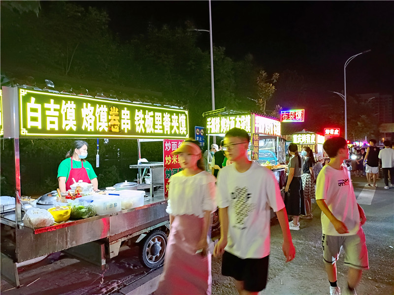 疫情散去,終歸風(fēng)平浪靜。城市夜晚被賦予更斑斕的色彩、更旺盛的生命力,夜消費、夜休閑、夜文化在鹿邑市民生活中不可或缺。為進一步促進“夜經(jīng)濟”健康發(fā)展,鹿邑縣商務(wù)局、市場監(jiān)管局、城市管理局等有關(guān)部門審慎包容、精準施策,堅持管理和服務(wù)并重,因地制宜,完善城市便民疏導(dǎo)點經(jīng)營秩序,建立臨街餐飲店、夜市小吃外擺準入機制。該縣城區(qū)原有8個便民疏導(dǎo)點,經(jīng)過實地調(diào)查論證,有關(guān)部門又將新近自然形成的3個商販聚集地設(shè)立為便民疏導(dǎo)點。同時,以個人申請、實地調(diào)查的方式對沿街門店外擺經(jīng)營進行放開。