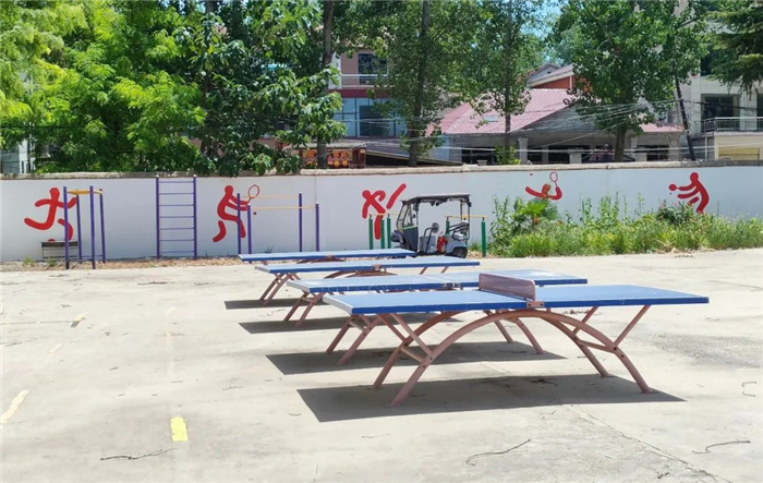 當天早晨6時,鹿邑縣書畫名師工作室負責人譚偉帶領孟凡奎、朱暢然、安磊、張存占等書法名師,驅車10多公里,趕到鄭家集鄉(xiāng)中心小學。老師們站在毫無遮蔽的炎炎烈日下,有的手拿尺子和粉筆起稿,有的手拿刷子和顏料涂色,有的手提水桶調制顏料,他們從操場的一端慢慢移動到另一端。臨近中午,氣溫越來越高,雖然他們汗流浹背,曬得滿臉通紅,但他們還是堅持到最后一刻。歷經(jīng)6個多小時后,他們終于將一個個方正大氣的黑體字、一個個簡約生動的運動圖標呈現(xiàn)在大家眼前。