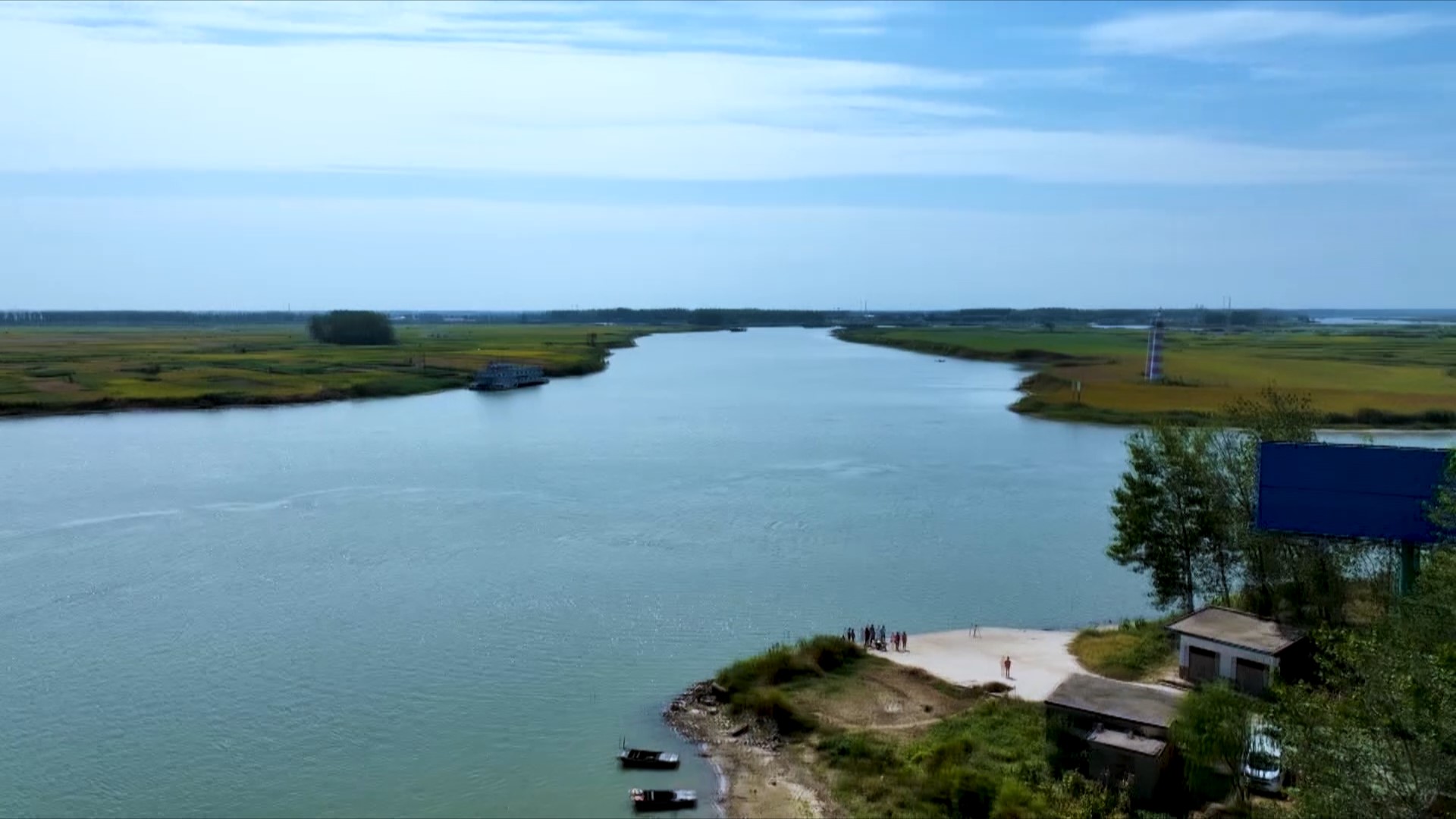 9月21日19時(shí)許,豫貨出海、“周”向世界——周口六條貨運(yùn)集裝箱航線大型異地采訪活動(dòng)采訪組一行在堤岸下的農(nóng)田中穿行,終于到達(dá)沫河口?;璋档囊股拢稍L組成員望著寬闊的河道,隱隱如山的貨輪伴著引擎的轟鳴聲緩緩駛過(guò),僅有的點(diǎn)點(diǎn)燈光來(lái)自對(duì)岸海事部門(mén)的檢查站。沫河口岸邊,一些房屋久棄不用,黑洞洞的窗口像一張張大嘴,仿佛在訴說(shuō)著村莊久遠(yuǎn)的歷史。