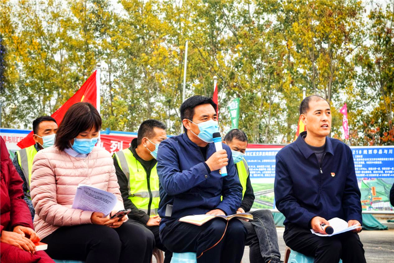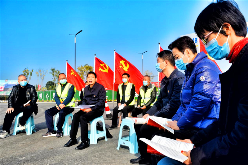 黨旗迎風(fēng)飄揚(yáng),機(jī)器轟鳴作響,伴隨著壓路機(jī)、挖土機(jī)等施工機(jī)械的作業(yè)聲,周口市公路系統(tǒng)職工在項(xiàng)目施工現(xiàn)場(chǎng)學(xué)習(xí)黨的二十大精神成為一道亮麗的風(fēng)景。