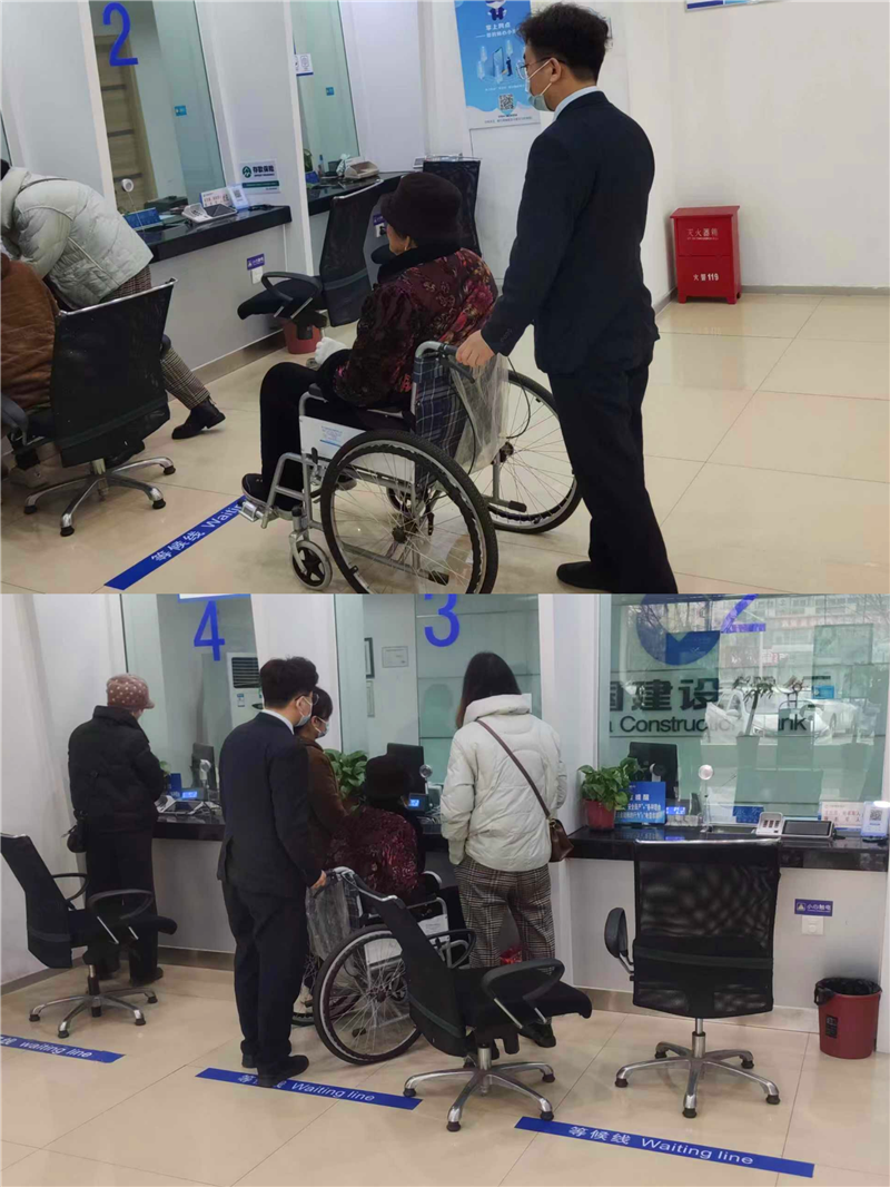 3月27日上午11點(diǎn)左右,項(xiàng)城蓮花大道支行大堂經(jīng)理張?jiān)评谠陂T(mén)口引導(dǎo)客戶(hù)時(shí),發(fā)現(xiàn)兩位客戶(hù)扶著另一位客戶(hù)走進(jìn)網(wǎng)點(diǎn)。注意到客戶(hù)雙腿行走不便,他立即推來(lái)輪椅,把客戶(hù)扶到輪椅上。三位客戶(hù)不熟悉銀行辦業(yè)務(wù)流程,大堂經(jīng)理張?jiān)评谌谈S指導(dǎo)辦理業(yè)務(wù)。經(jīng)詢(xún)問(wèn),大堂經(jīng)理得知客戶(hù)前來(lái)辦理社??せ顦I(yè)務(wù),以便領(lǐng)取殘疾人補(bǔ)貼。大堂經(jīng)理立即幫他安排綠色通道,幫助家屬推輪椅到柜臺(tái)辦理,在一旁指導(dǎo)客戶(hù)填單跟簽名。