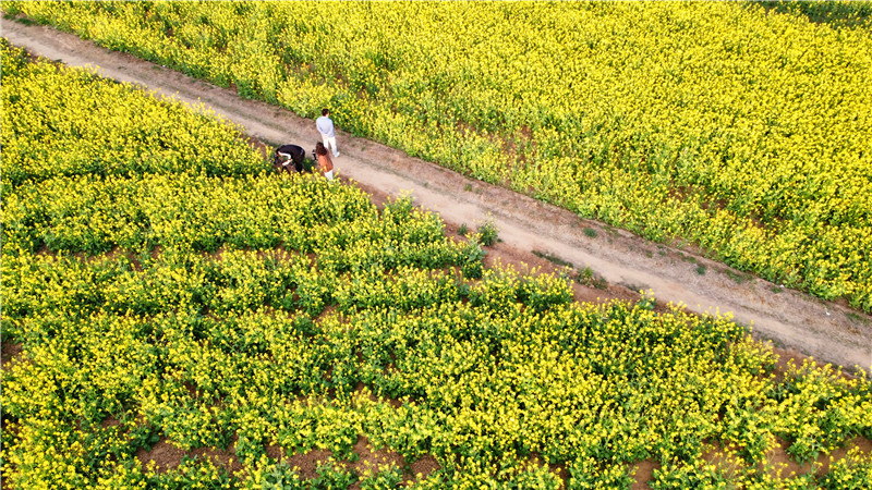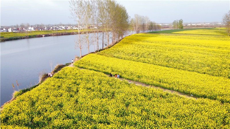 4月2日,春日明媚,沙潁河兩岸一片片金燦燦的油菜花“染黃”了大地,空氣中彌漫著香氣,大片的油菜花和漂亮的村居、田間勞作的農(nóng)民交織在一起,如詩如畫,美不勝收,讓人心曠神怡。作為春日大自然最美的顏色,成片的油菜花海成為旅游愛好者追逐的風(fēng)景。