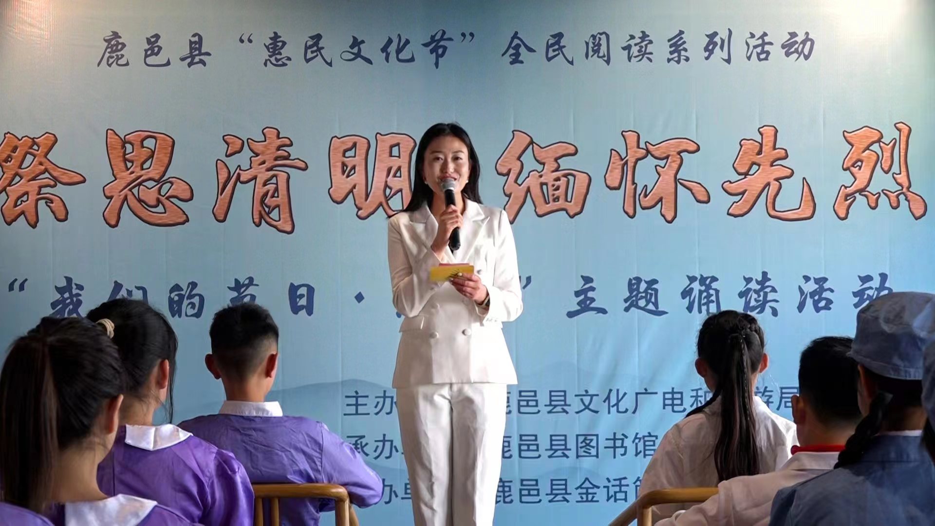 活動由該縣文化廣電和旅游局主辦,縣圖書館承辦,旨在緬懷追憶革命先烈英雄事跡,持續(xù)深化“惠民文化節(jié)”全民閱讀系列活動,向青少年學生普及清明節(jié)文化知識。當日,在該縣圖書館三樓,縣圖書館工作人員講述全縣部分革命先烈英雄事跡和悲壯故事;縣文化廣電和旅游局工作人員講解清明節(jié)由來、清明節(jié)習俗、清明節(jié)為什么要文明祭祀、清明節(jié)為什么要祭祀和掃墓等知識;身著“小八路軍裝”的青少年學生依次登臺,聲情并茂地朗誦《中國人清明節(jié)》《清明的雨》《我愛你中國》《鄉(xiāng)愁》《清明詩詞》《不朽》《青松禮贊》《穿越時空的對話》等經(jīng)典詩詞,表達對革命先烈的無限崇敬和緬懷。