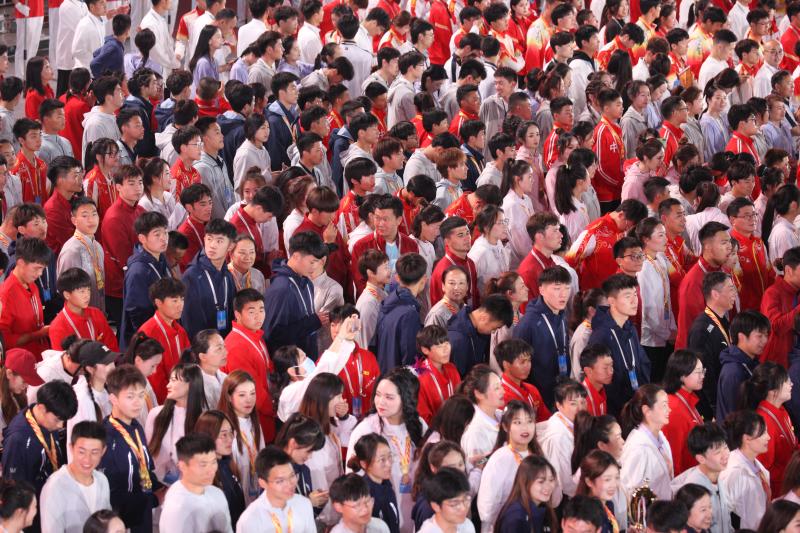 閉幕式上,來自全省各地的運(yùn)動員用手機(jī)記錄下精彩瞬間。記者 劉俊濤 攝