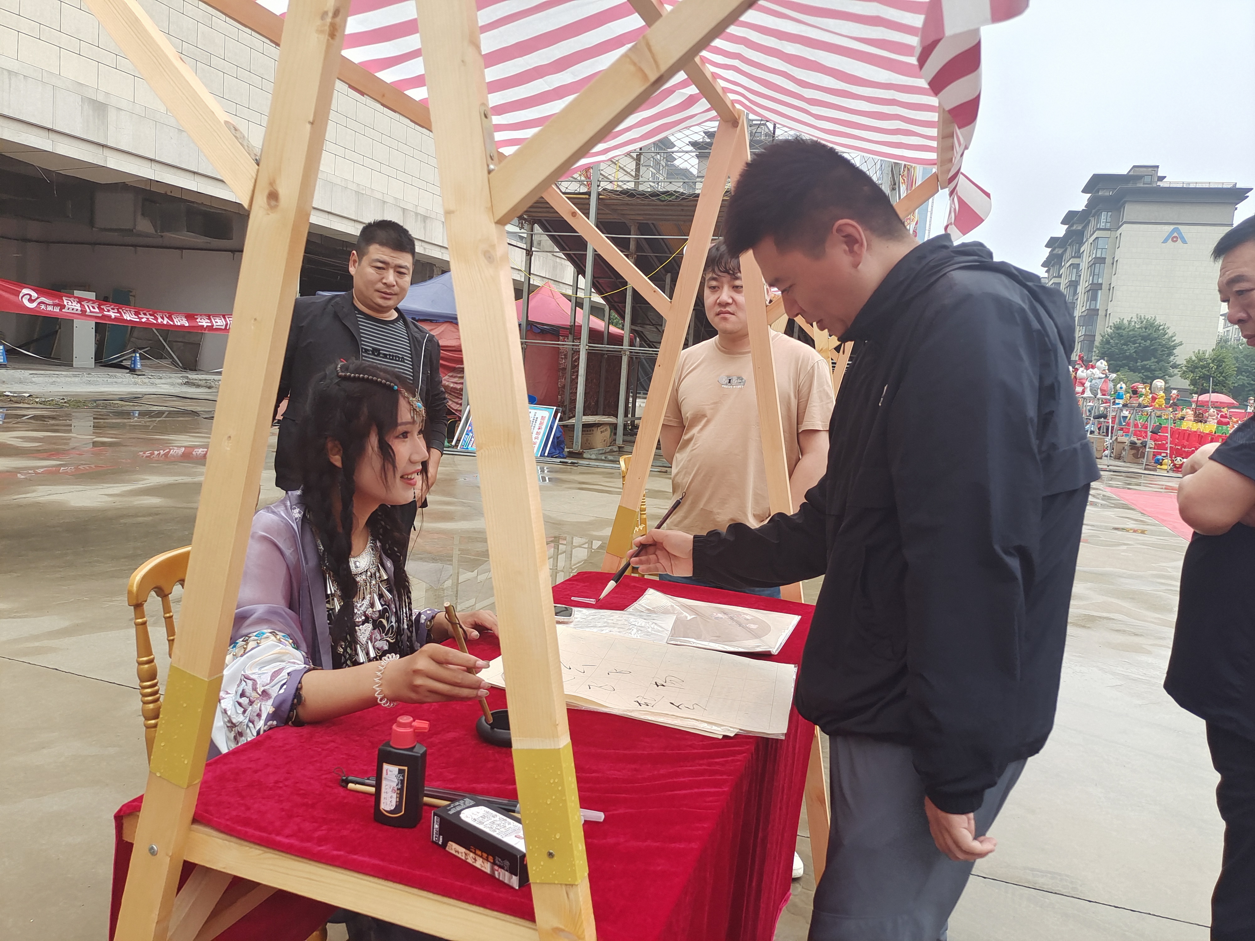 伴隨著開場舞《盛世歡歌》,“潮流雙節(jié)·中秋游園會暨國慶嘉年華”活動啟動儀式正式拉開帷幕。泥泥狗、剪紙、書法、繪制團(tuán)扇……現(xiàn)場工作人員有的身著少數(shù)民族服裝,有的身著漢服,用親手制作的方式展示著傳統(tǒng)非物質(zhì)文化遺產(chǎn)獨(dú)有的韻味,吸引著來往的大人小孩駐足。有的甚至親自參與制作,捏泥泥狗、寫毛筆字、畫傳統(tǒng)團(tuán)扇……現(xiàn)場歡笑不斷,大家在親自動手的過程中充分感受著中國傳統(tǒng)節(jié)日的豐富文化內(nèi)涵。