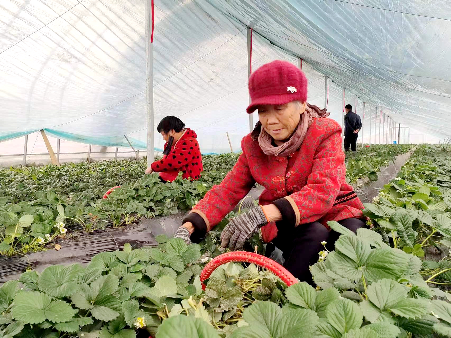在田廣水的草莓采摘園,一股清香撲鼻而來。綠油油的草莓葉下,一顆顆鮮紅欲滴的草莓長勢喜人,十分誘人。這里的20多畝草莓已經(jīng)開始結(jié)果成熟上市?!俺醵乃贩N本來很少,我們大棚種植的‘紅顏’草莓香甜、肉厚、口感好,大人孩子都很喜歡吃?!碧飶V水說,草莓園成熟季雇用工人近30人,全部來自村里的留守婦女、老人及脫貧監(jiān)測戶。