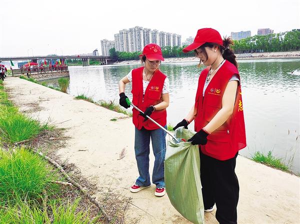 6月2日,我市200余名環(huán)保志愿者在沙潁河中心城區(qū)段周口大道橋東側(cè)巡河護(hù)水、清理岸邊雜物、打撈河面漂浮物。